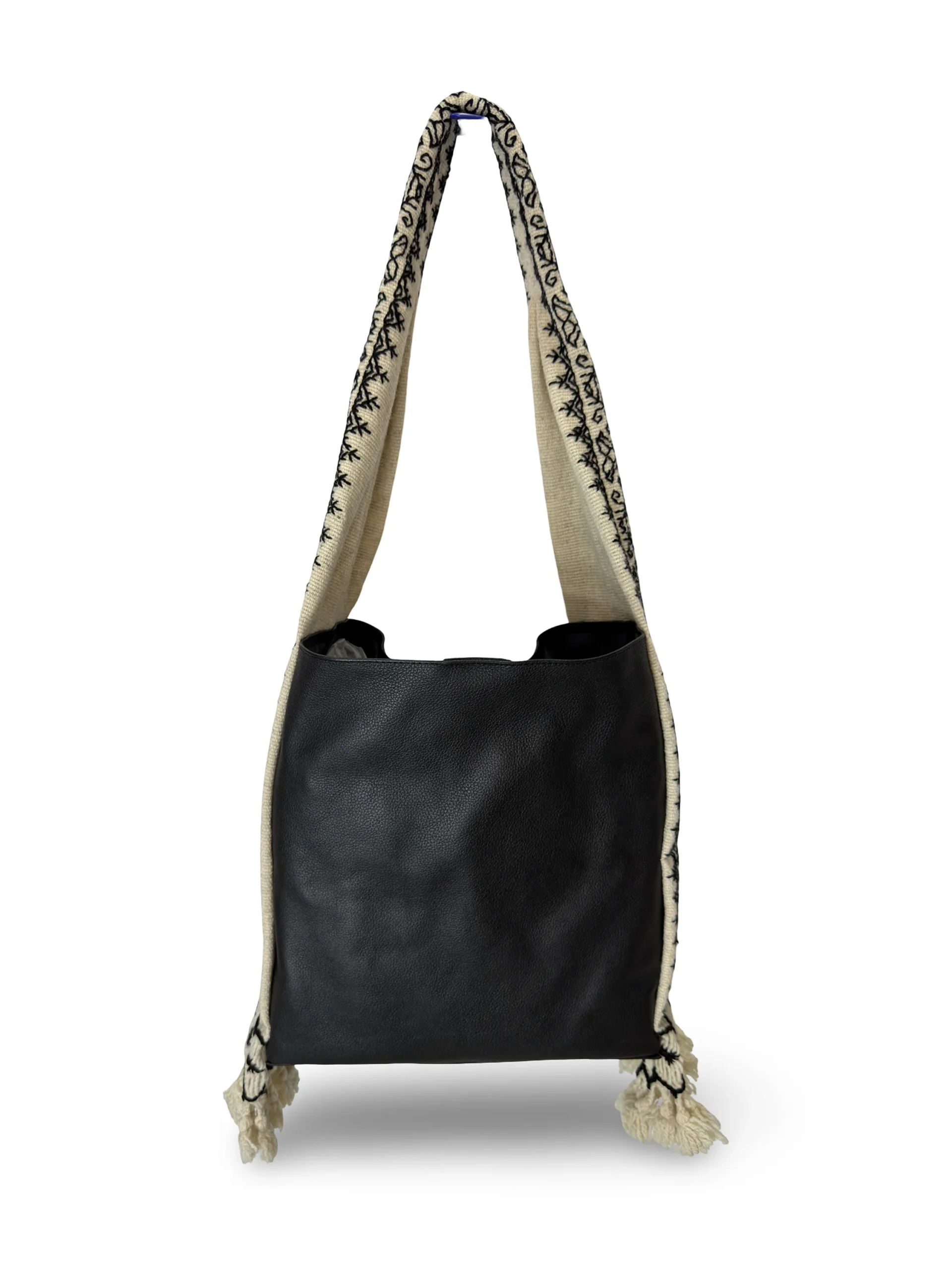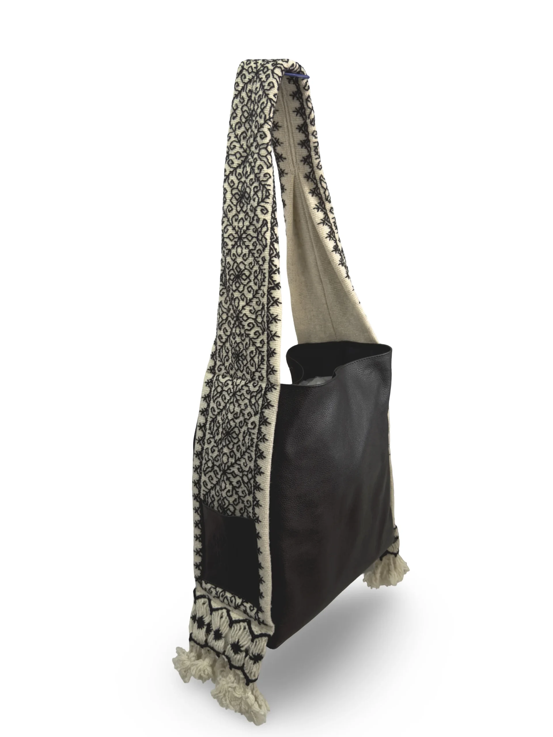 NEGRA, con asa CRUDO de bordado artesanal NEGRA. Dimensiones: 30×34 cm. Un diseño exclusivo, elegante y resistente para