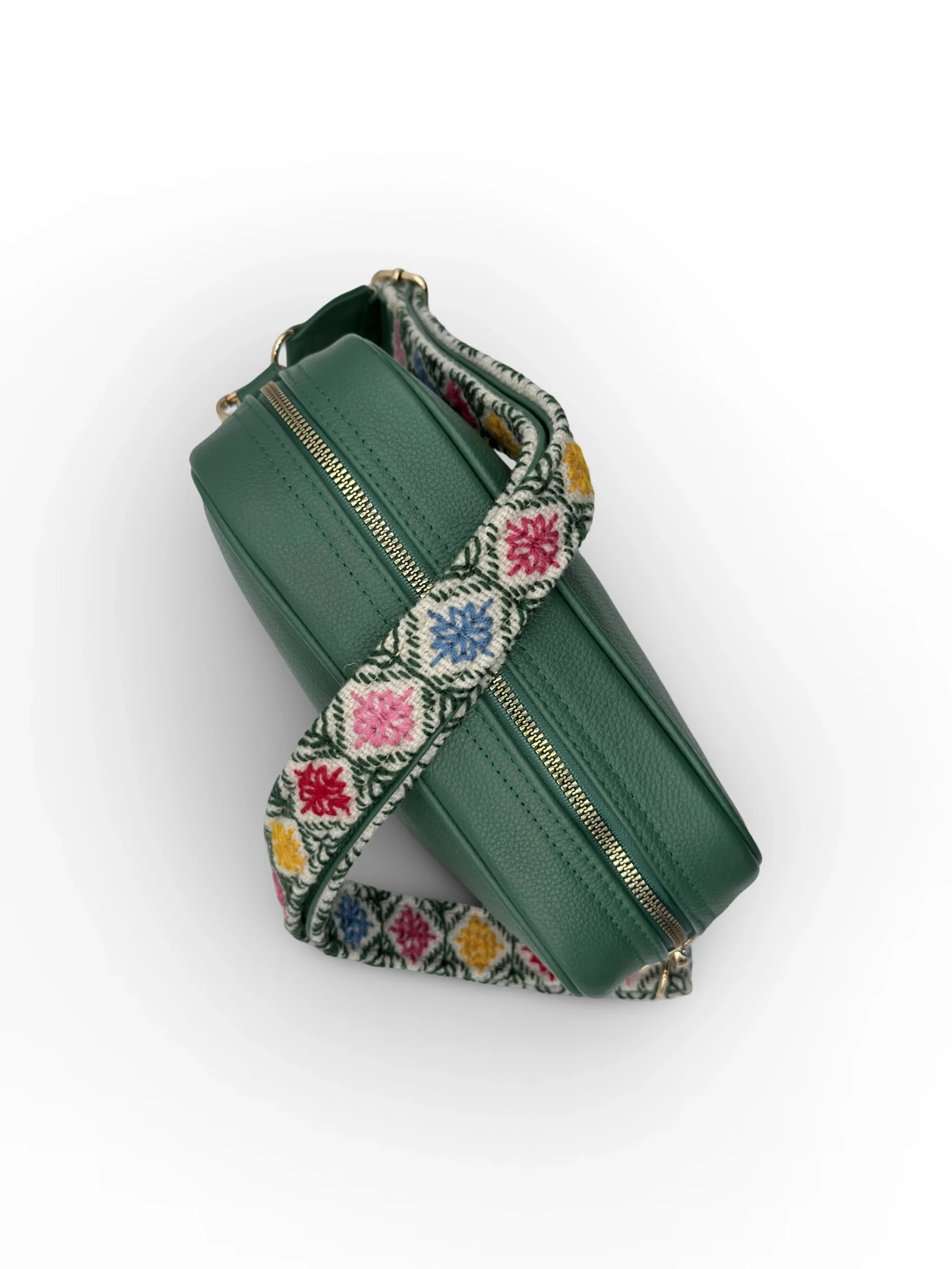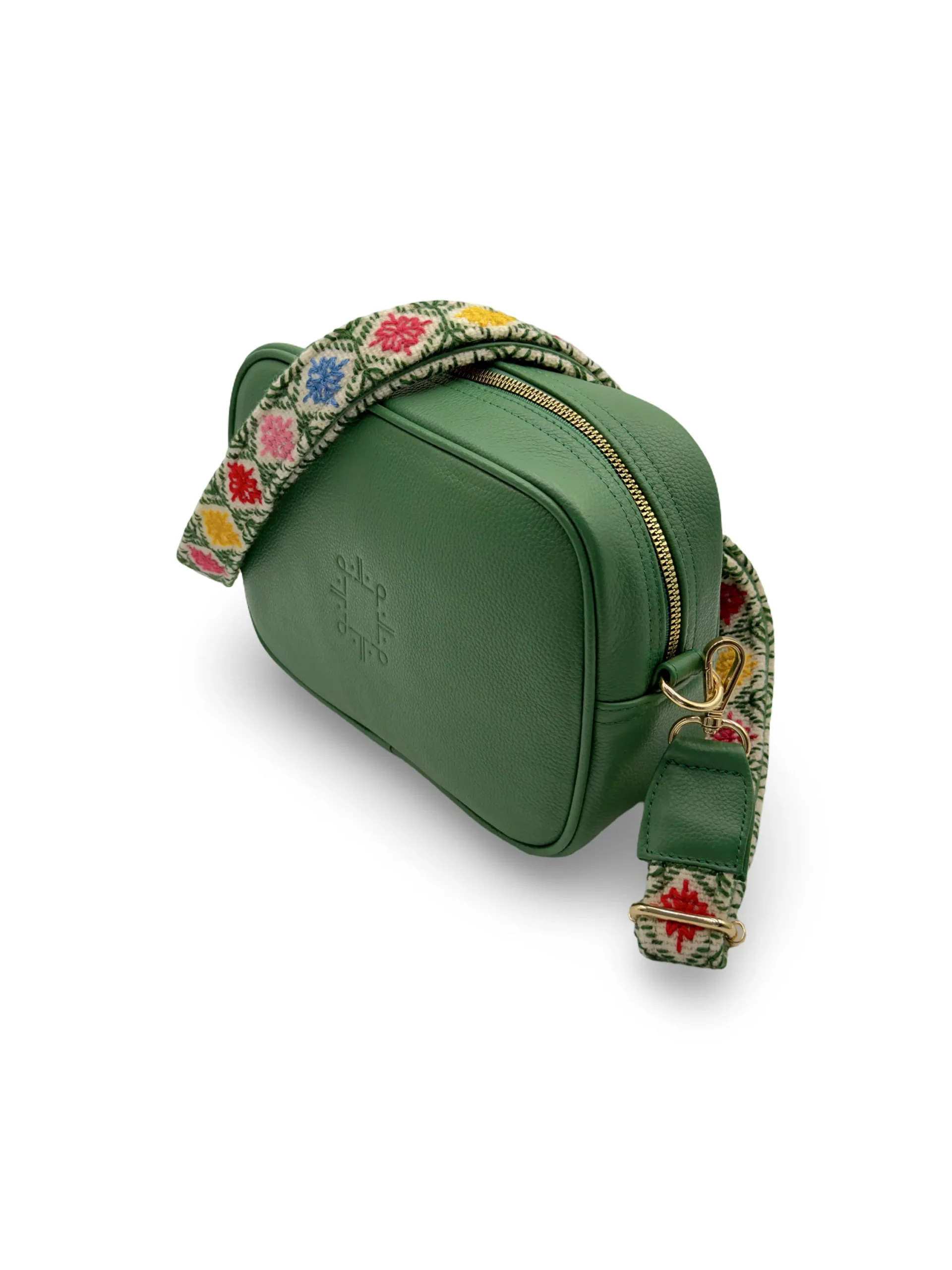 Bolso Bandolera Ramona de Piel – VERDE ESMERALDA + CRUDO