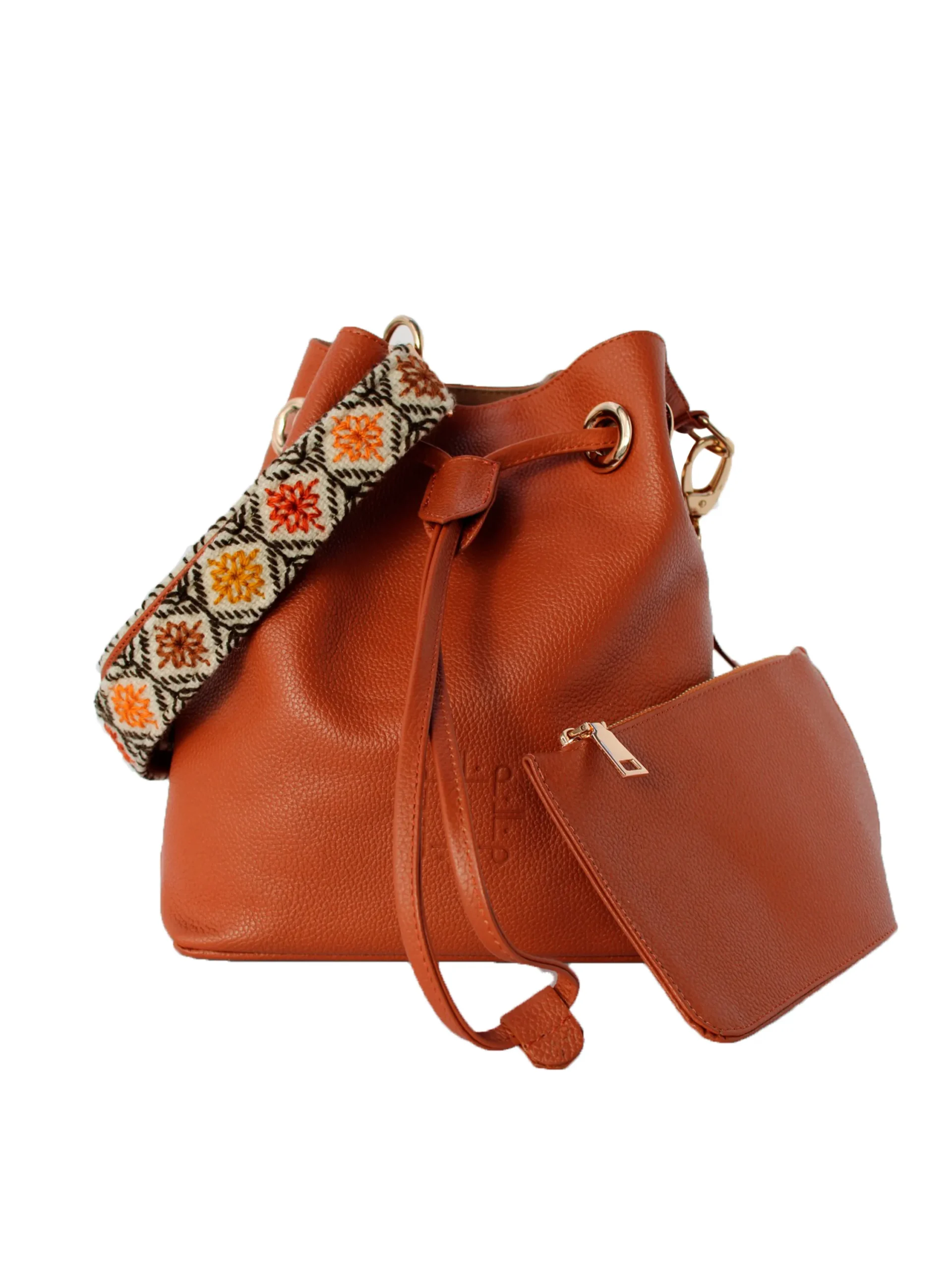 Bolso Bucket Juliana de Piel – CAMEL + CRUDO