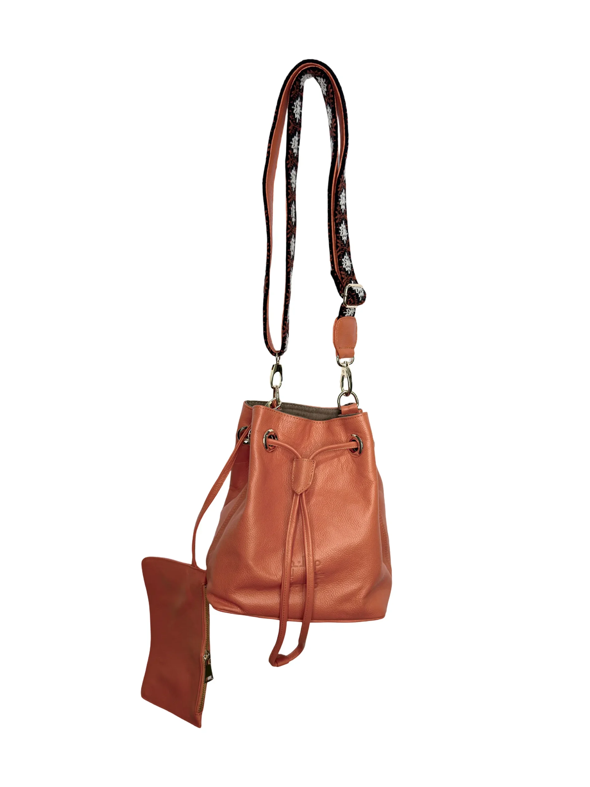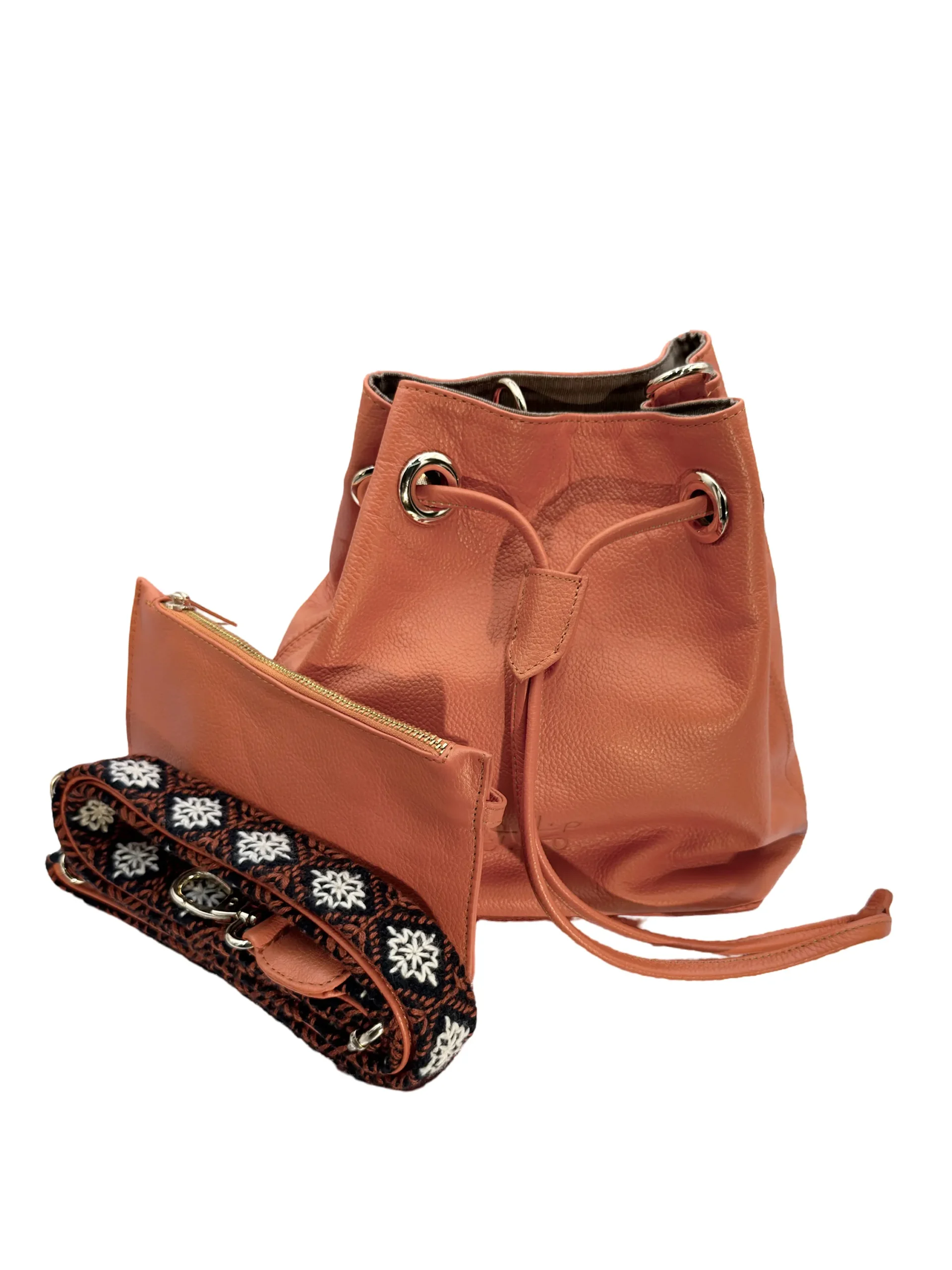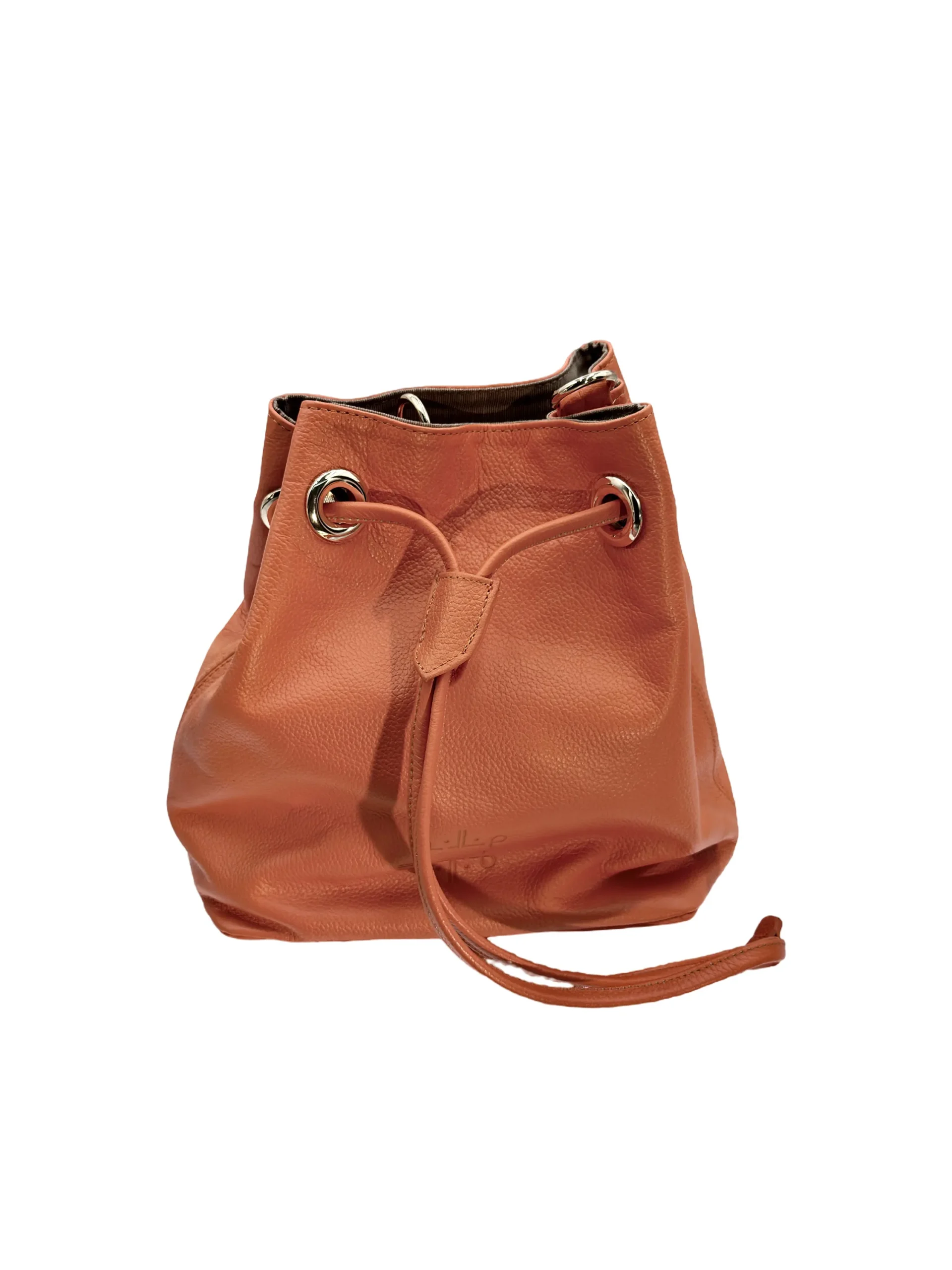 Bolso Bucket Juliana de Piel – NARANJA + NEGRA