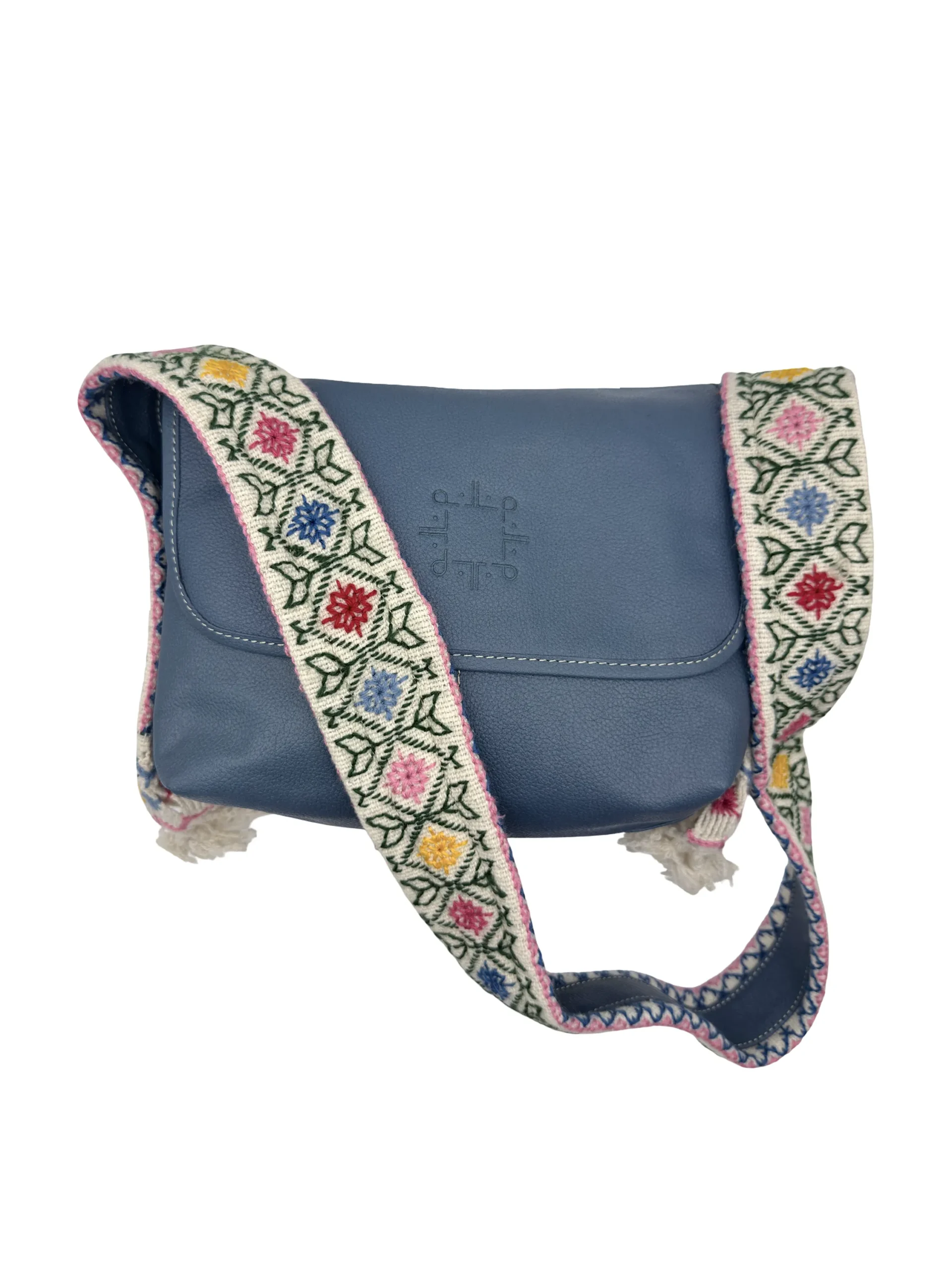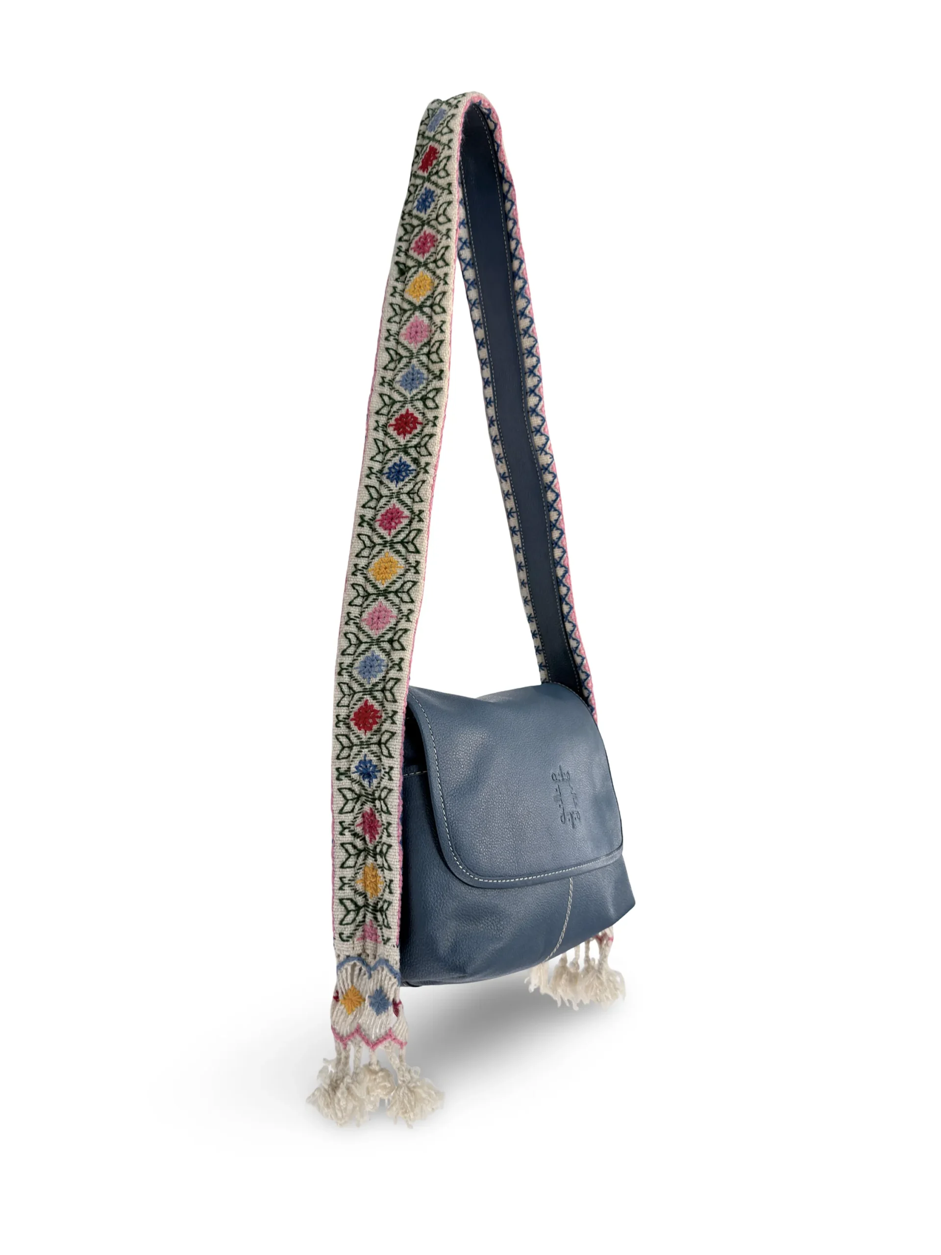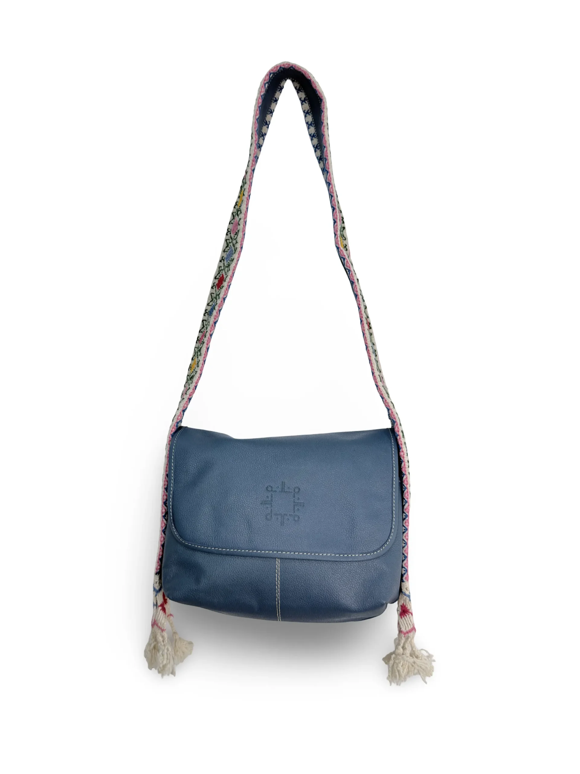 Bolso Crossbody Simona de Piel – AZUL MEZCLILLA + CRUDO