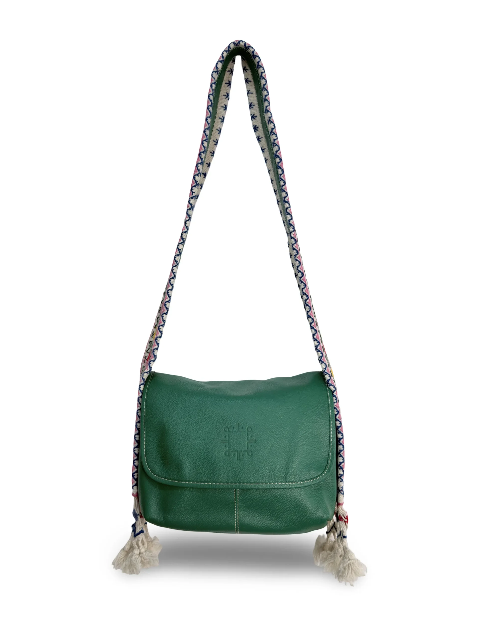 Bolso Crossbody Simona de Piel – VERDE ESMERALDA + CRUDO